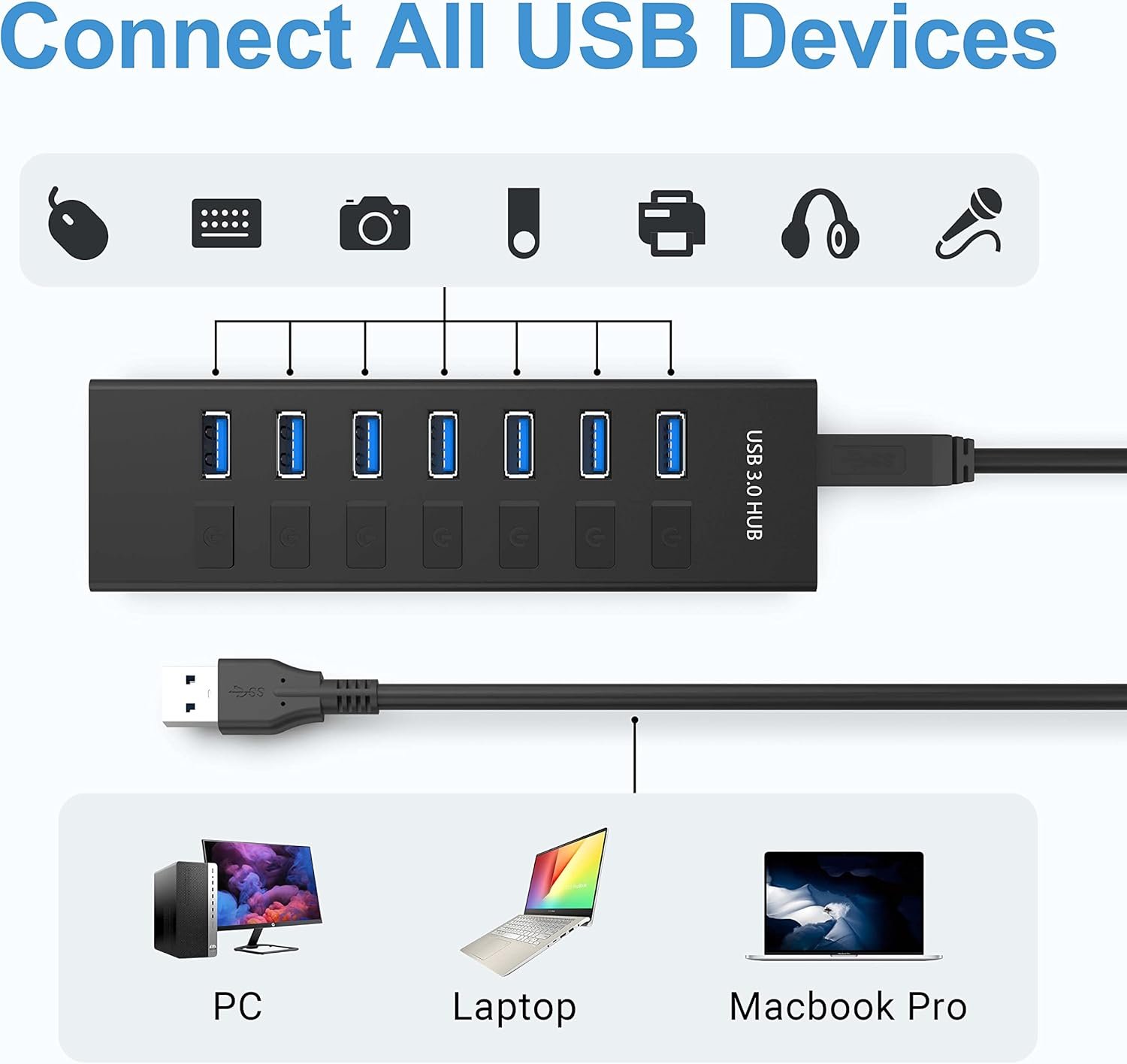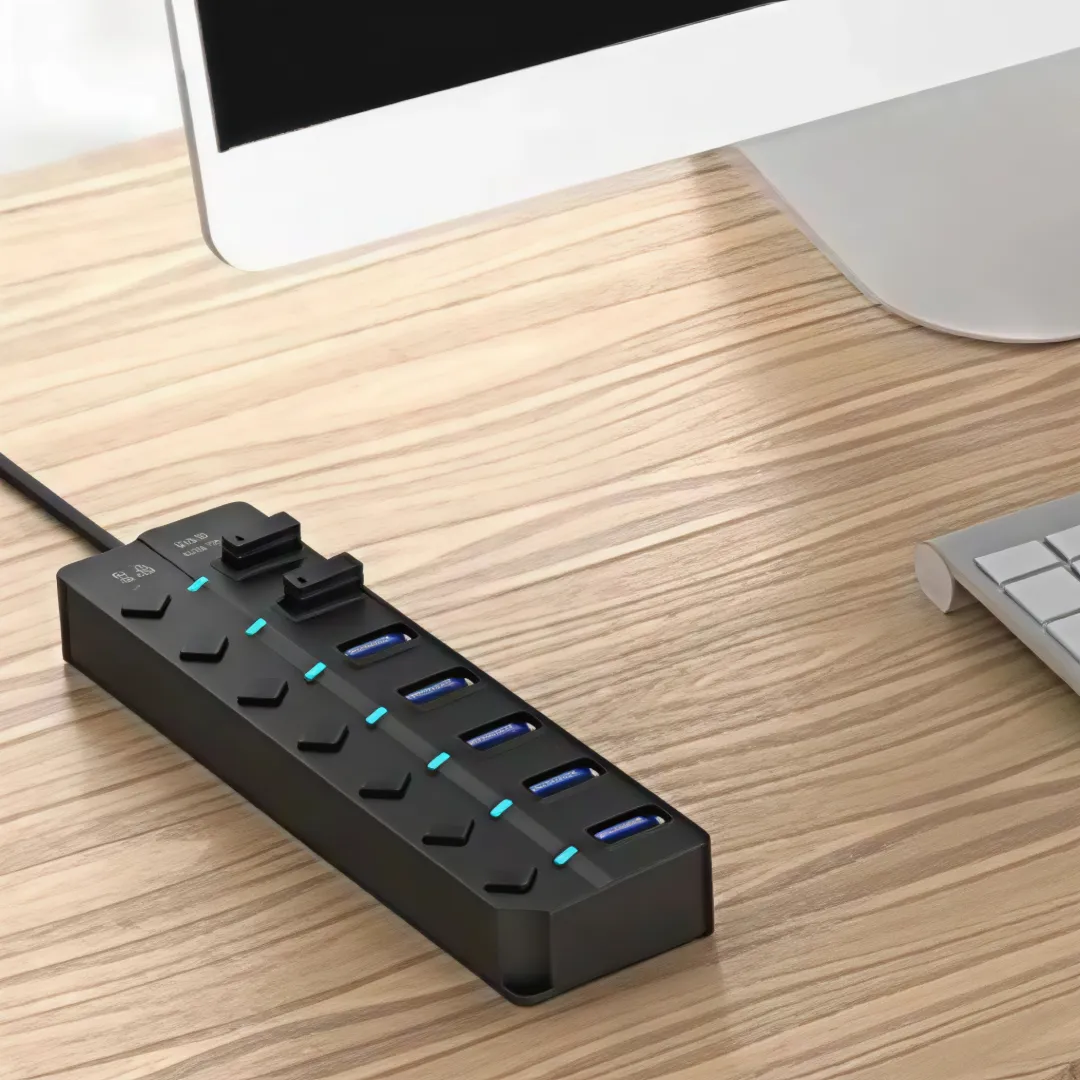 Hub USB 2.0 7 en 1 con Interruptores On/Off – Control Total y Conectividad