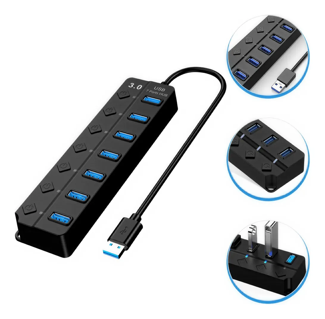 Adaptador Hub Usb 2.0 7 Usb Interruptores On/off En Cada Usb