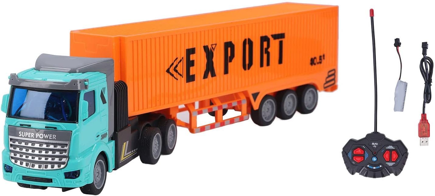 Camión De Carga Contenedor Export A Control Remoto Verde Agua Y Naranja