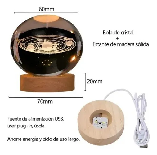 Lampara Bola De Cristal 3D Grabado Láser Decoración Esfera