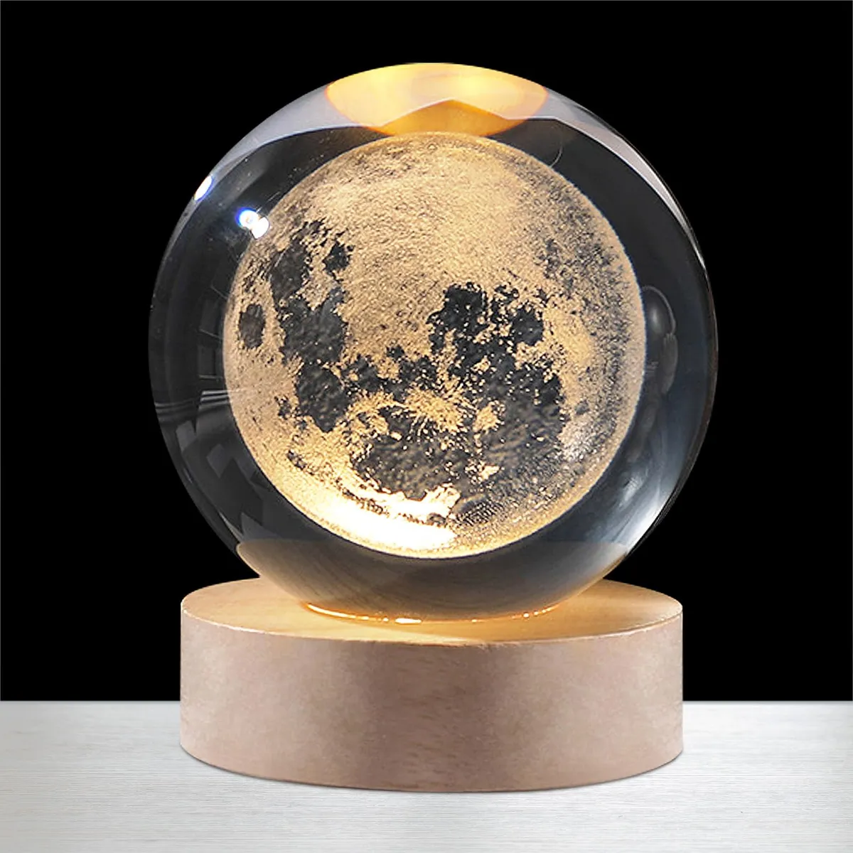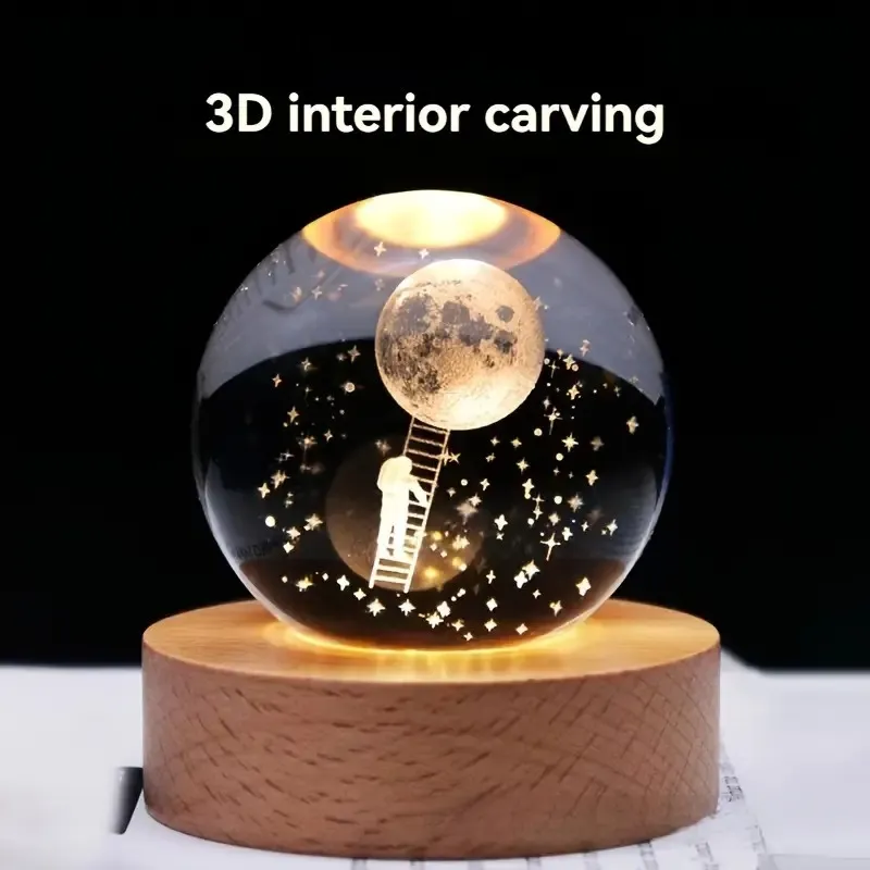 -Bola de cristal grabada en 3D con diseños varios, ideal para decoración, habitación infantil o escritorio.