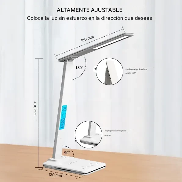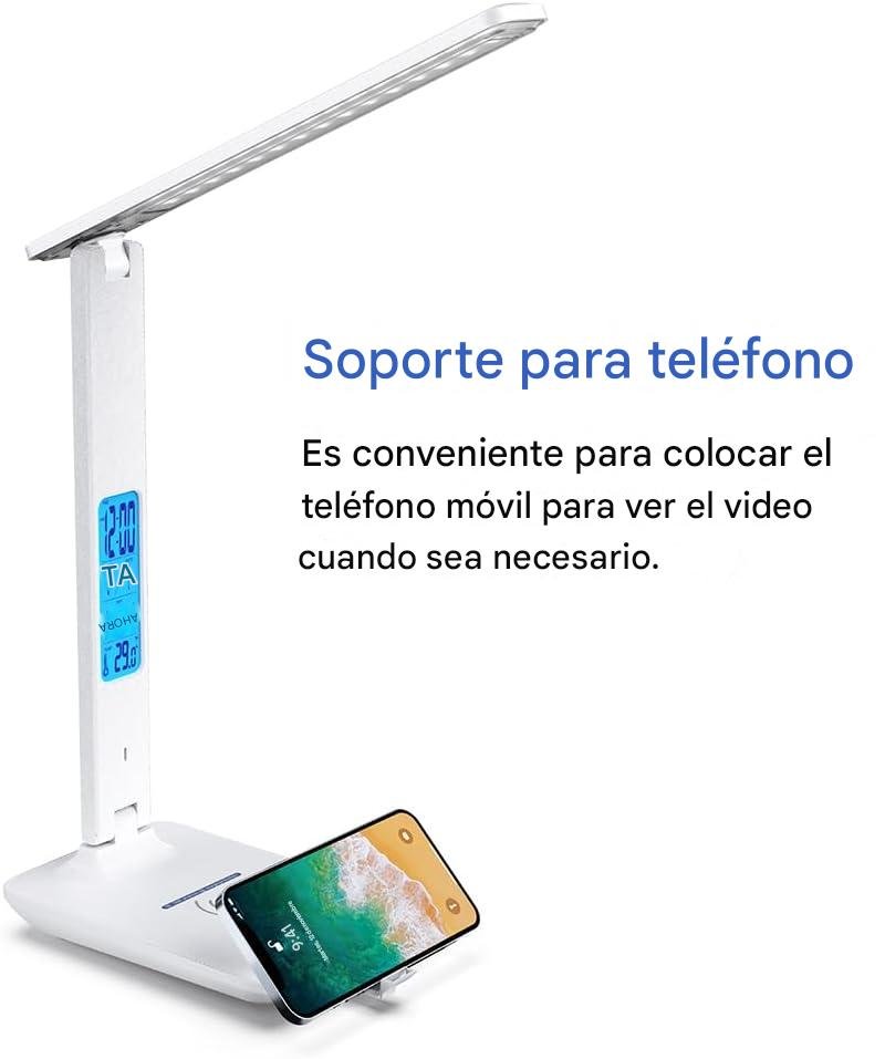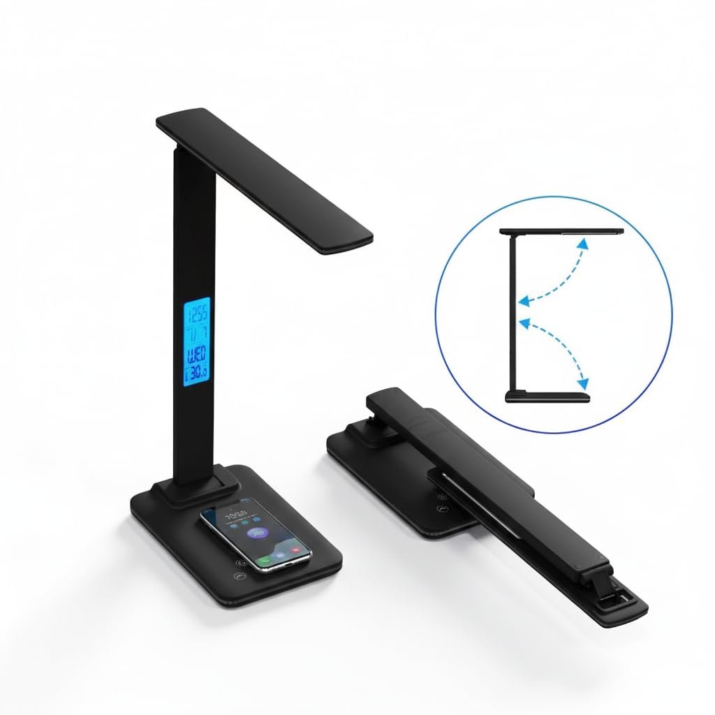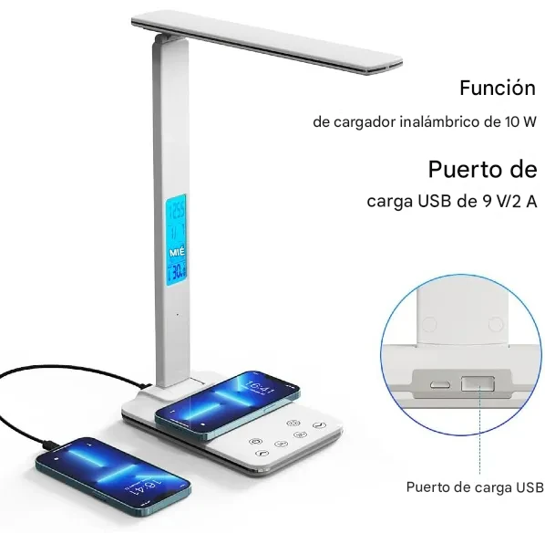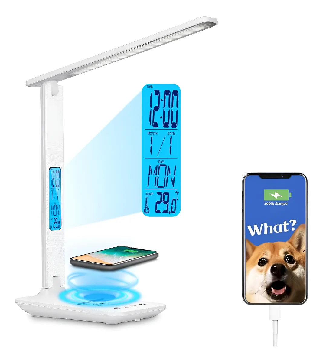 Lámpara de Escritorio LED con Pantalla Digital y Carga Inalámbrica Qi