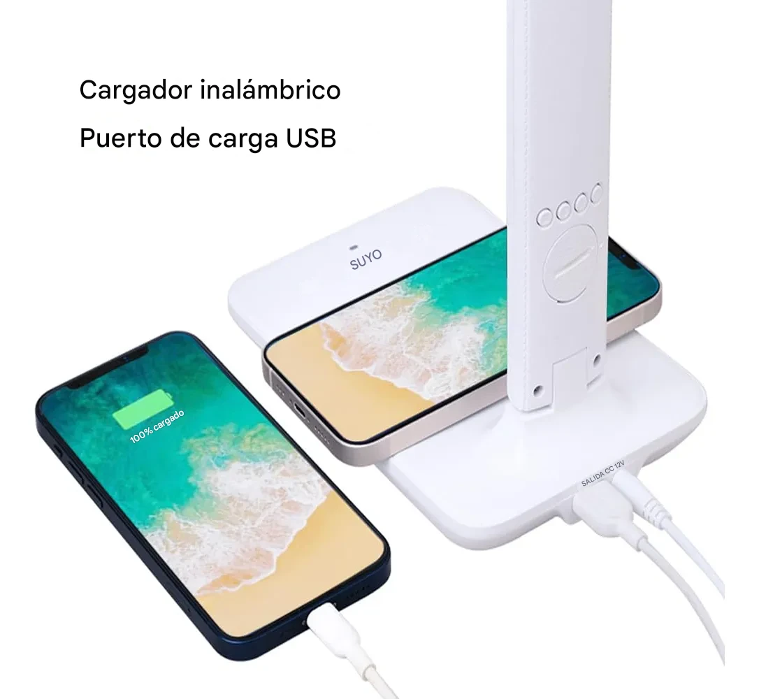 Organizá y modernizá tu espacio de trabajo o descanso con esta lámpara LED multifunción que integra iluminación, reloj digital, alarma despertador y carga inalámbrica para celular en un solo dispositivo. Su pantalla digital muestra hora, fecha y temperatura, brindando información útil de un vistazo mientras mantenés tus dispositivos cargados.