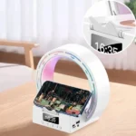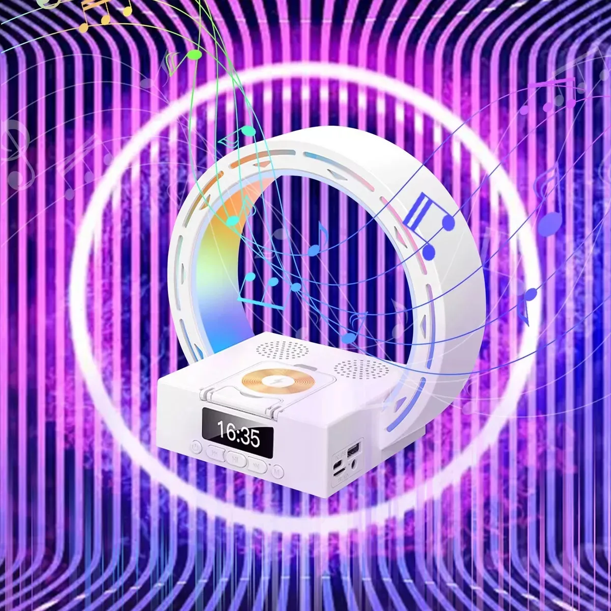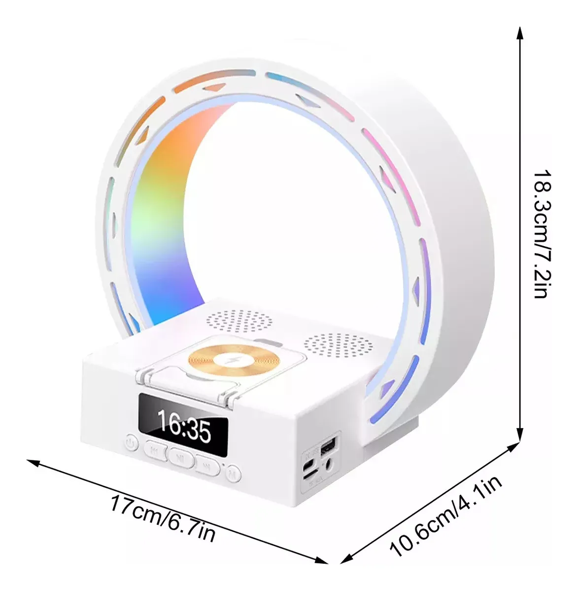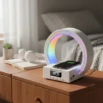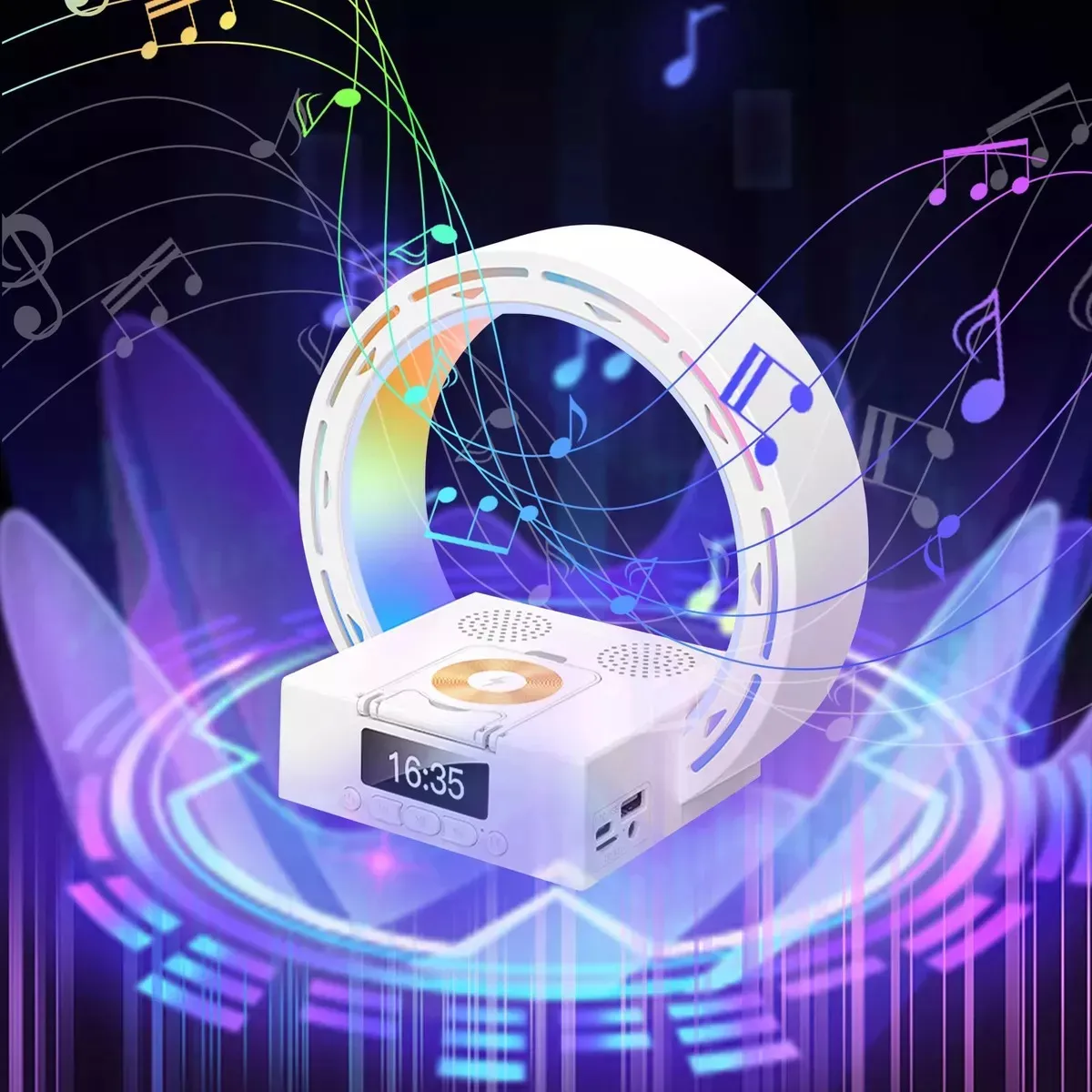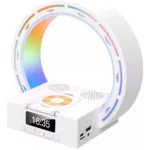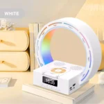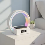Combiná varias funciones en un solo dispositivo con esta lámpara LED que no solo ilumina tu espacio, sino que además reproduce música por Bluetooth, muestra la hora con alarma despertador y carga tu celular de forma inalámbrica. Ideal para escritorio, dormitorio, sala o ambiente moderno.