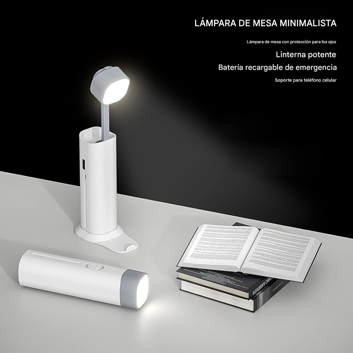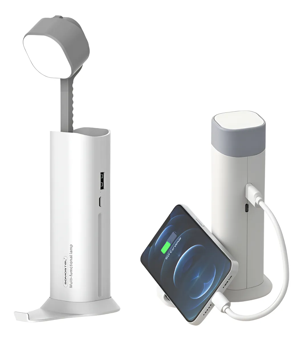 Lampara Retráctil Recargable De Escritorio Con Power Bank Y Soporte Para Celular