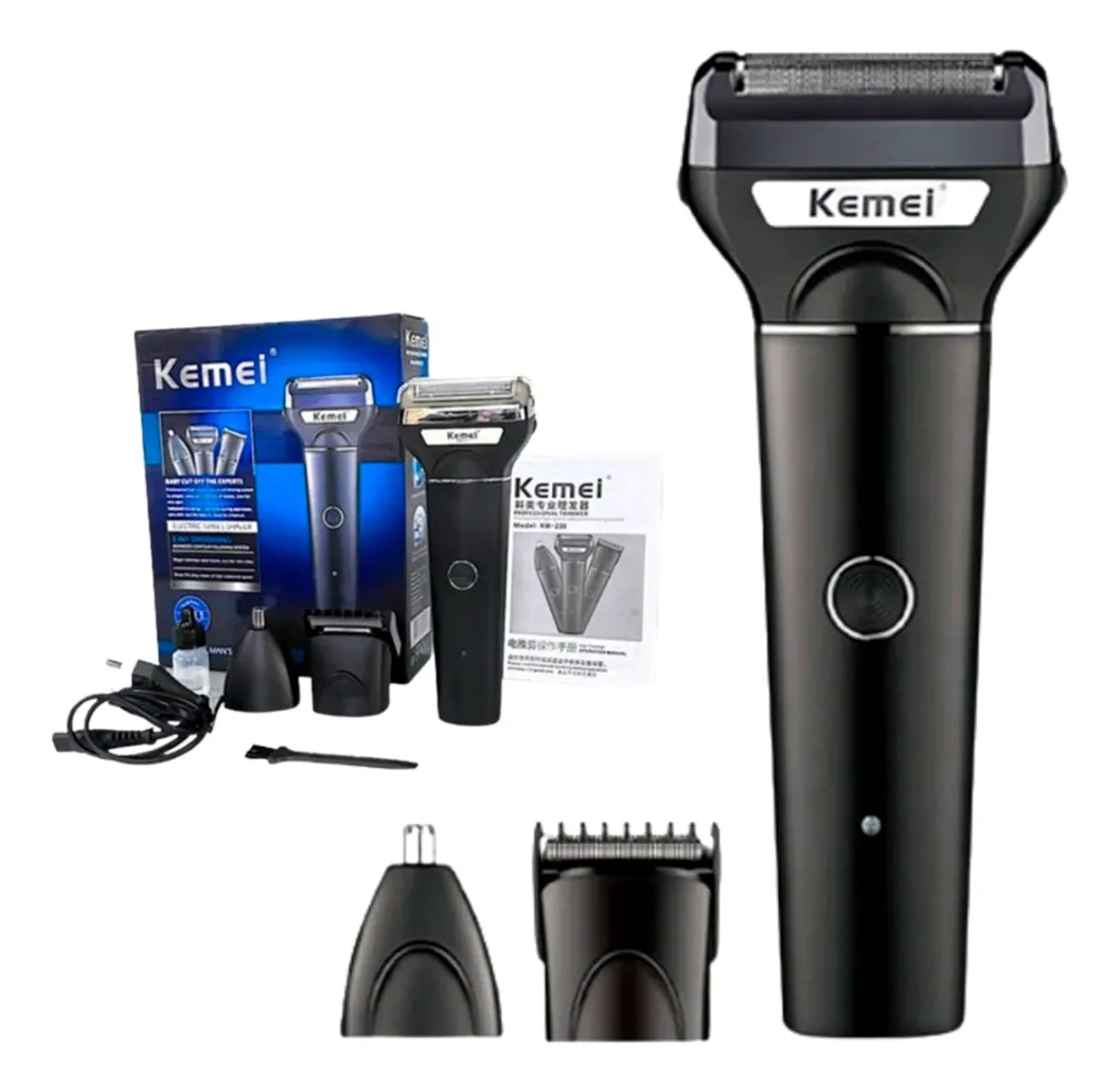 Afeitadora Eléctrica Kemei KM-239 3 en 1 – Recortadora Facial Profesional para Hombre