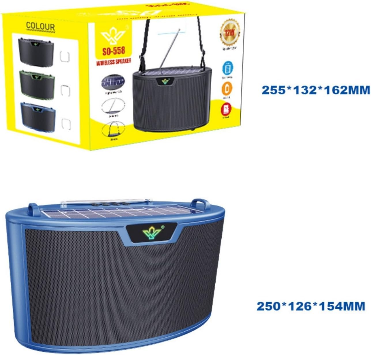 Parlante Bluetooth Panel Solar Radio Antena Usb Aux Portátil