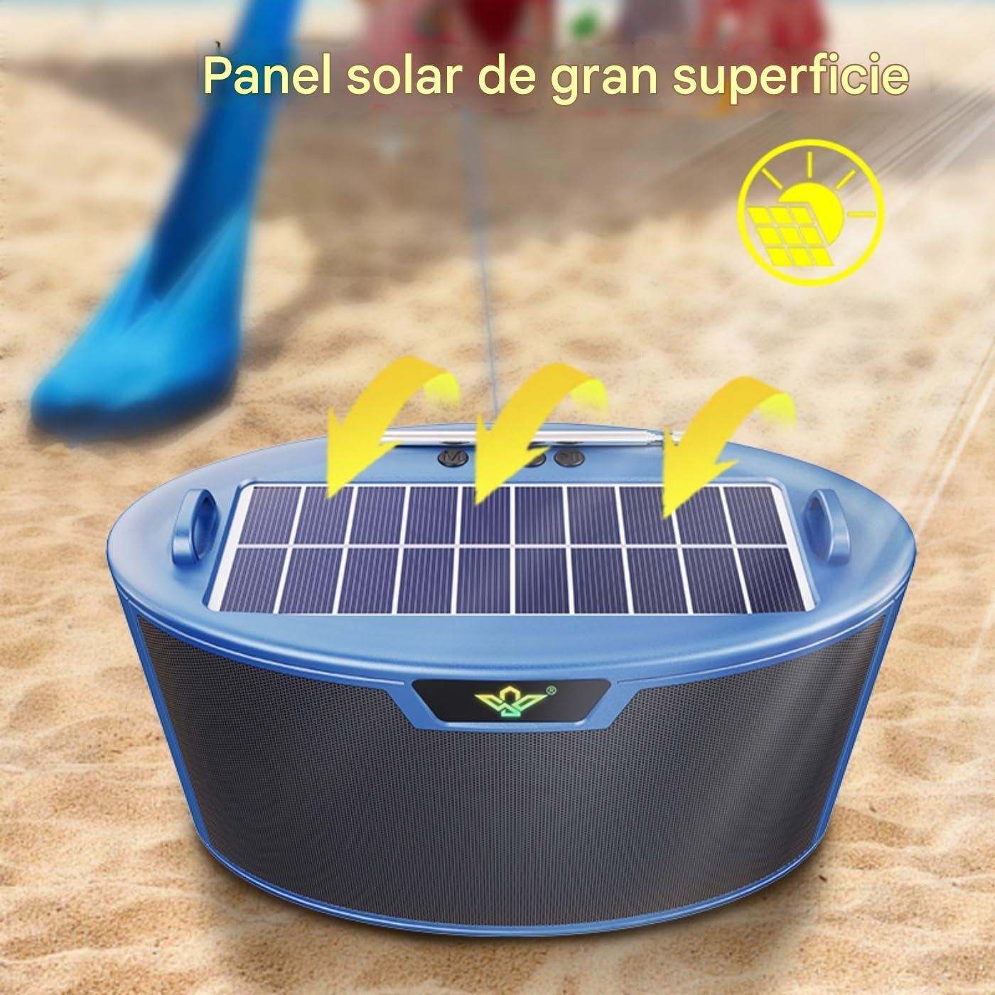 Su panel solar integrado permite recargarlo de manera práctica y ecológica, garantizando música continua sin preocuparte por la batería.