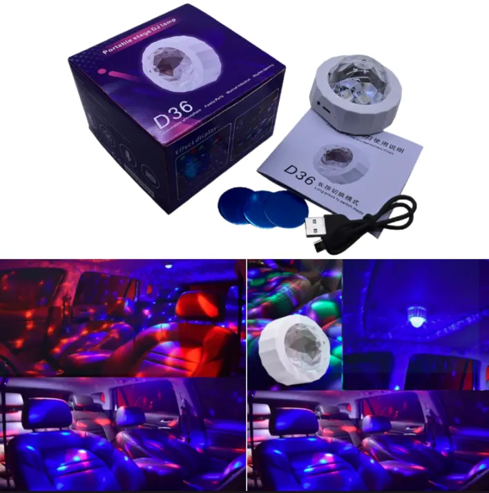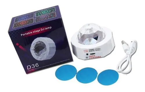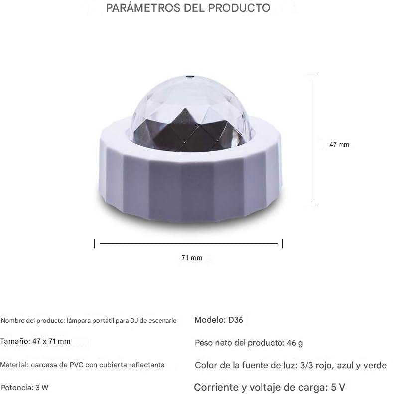Lámpara LED Giratoria Recargable Modelo D36 – Efectos de Luz para Fiestas, Eventos o auto
