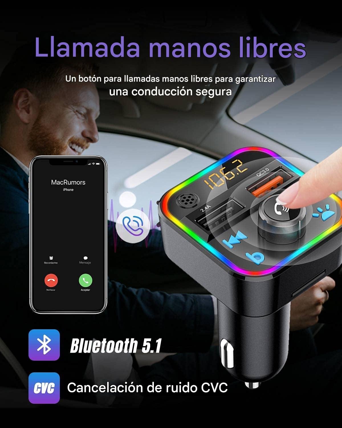 Sintonizador Emisor Radio Fm Bluetooth 2 Usb Microsd Luces