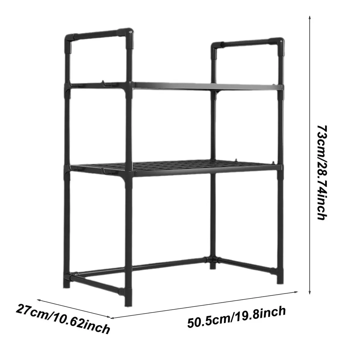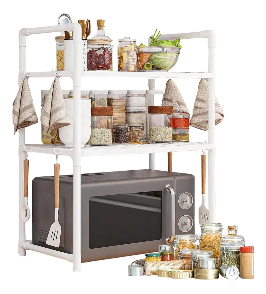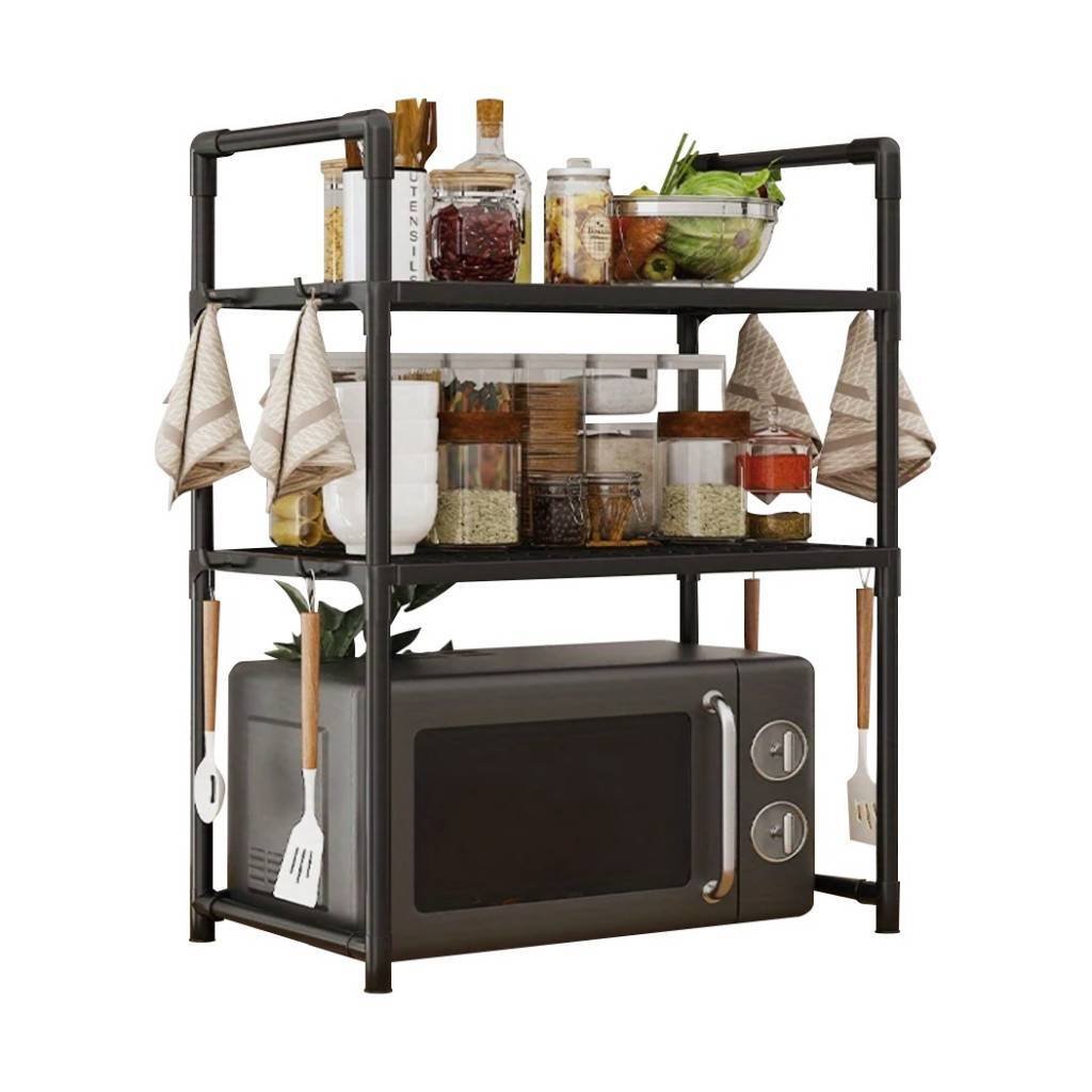 Estante metálico con 2 niveles, ideal para colocar microondas, ollas, sartenes, frascos, botellas o utensilios de cocina.