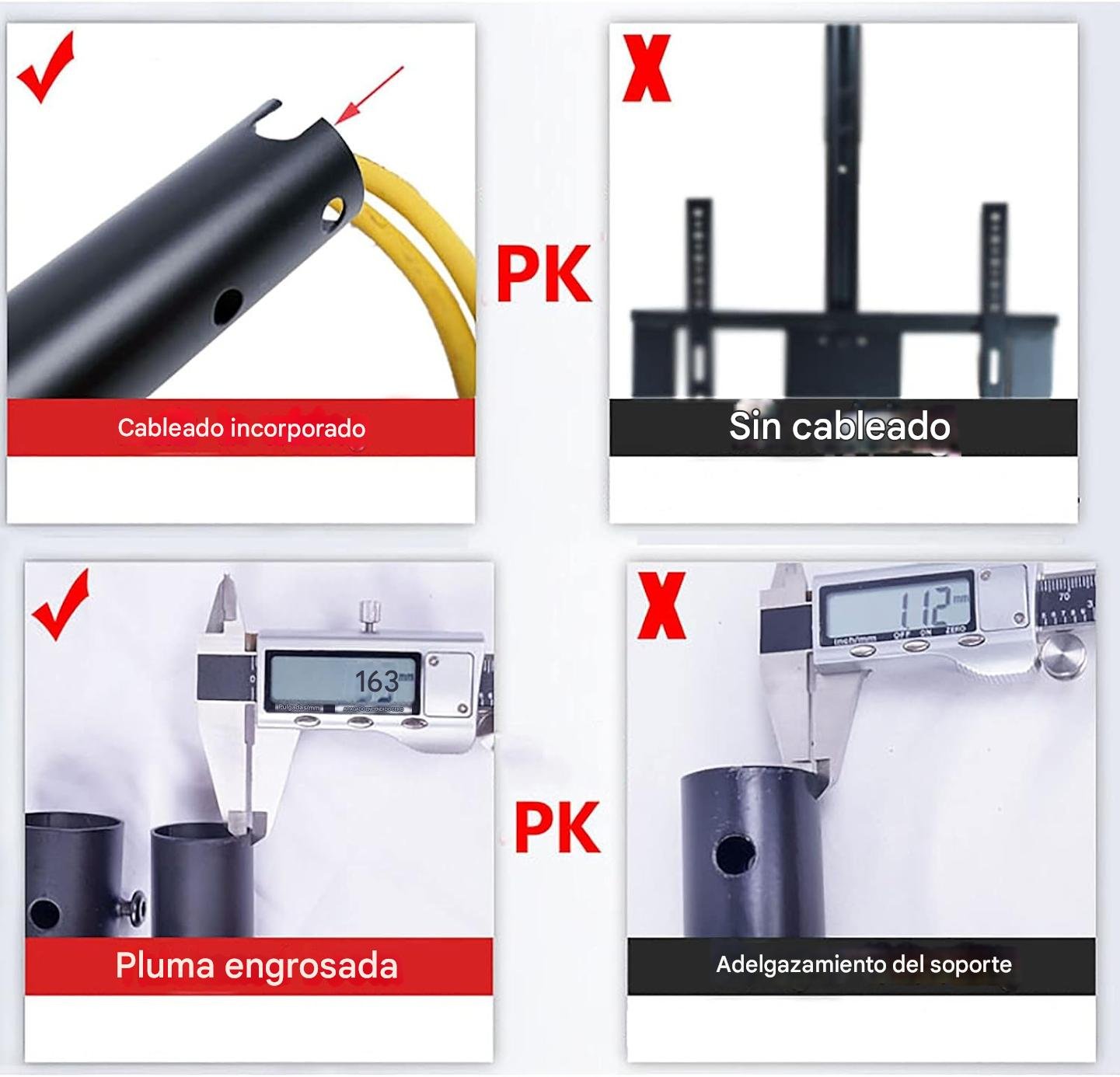 -Ajuste de altura: Permite regular la distancia entre el techo y el televisor para mayor comodidad visual.