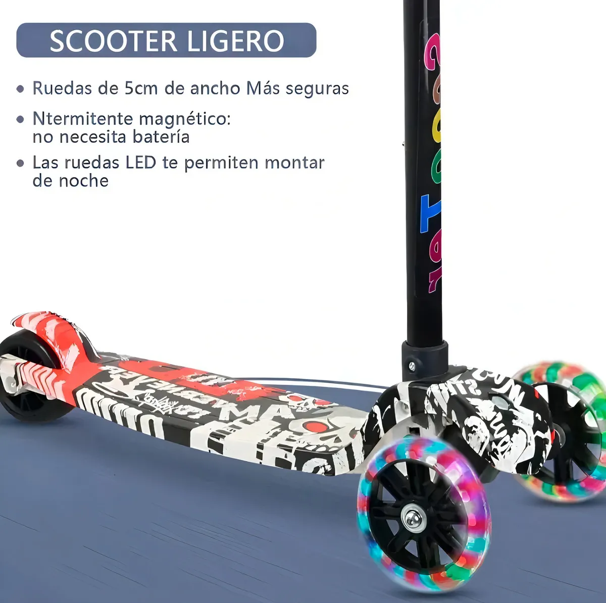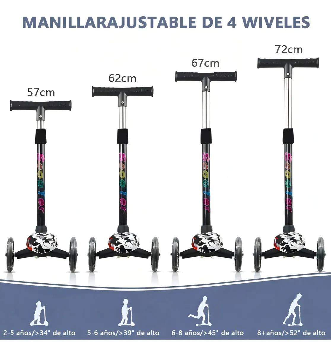 Un scooter divertido, seguro y ajustable que acompaña el crecimiento y las aventuras de los niños con estilo.